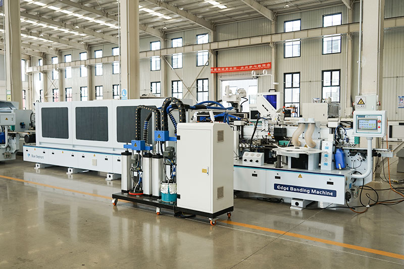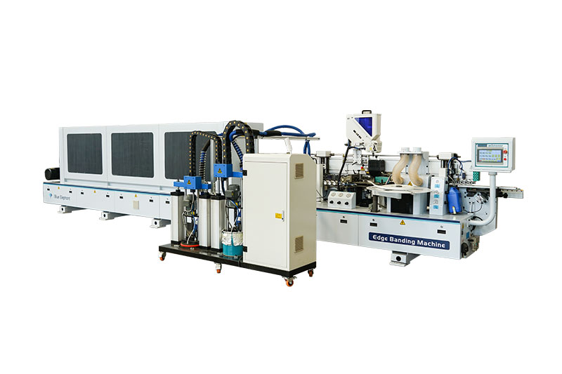 全自動(dòng)封邊機(jī)功能:前分離-預(yù)銑-涂膠貼邊1-涂膠貼邊2-齊頭-手動(dòng)粗修-手動(dòng)精修-跟蹤倒角-刮邊-平刮-后清洗-拋光1-拋光2。