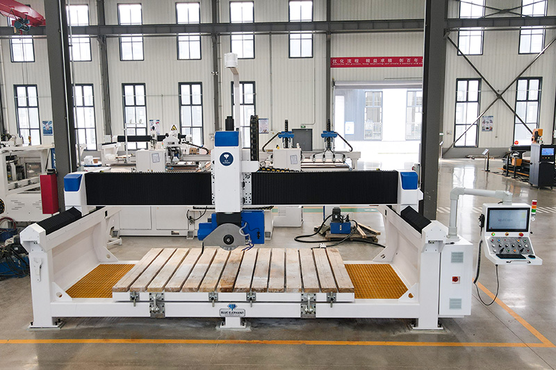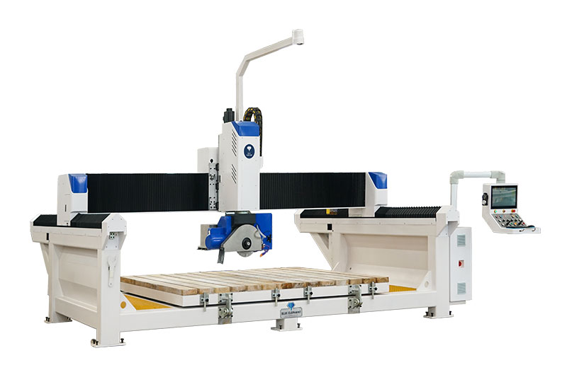 5+1 數(shù)控橋切鋸能夠以任何所需的角度和形狀對花崗巖、大理石、人造石、板巖和各種其他石材進(jìn)行切割和雕刻。本機(jī)采用的藍(lán)象數(shù)控系統(tǒng)。