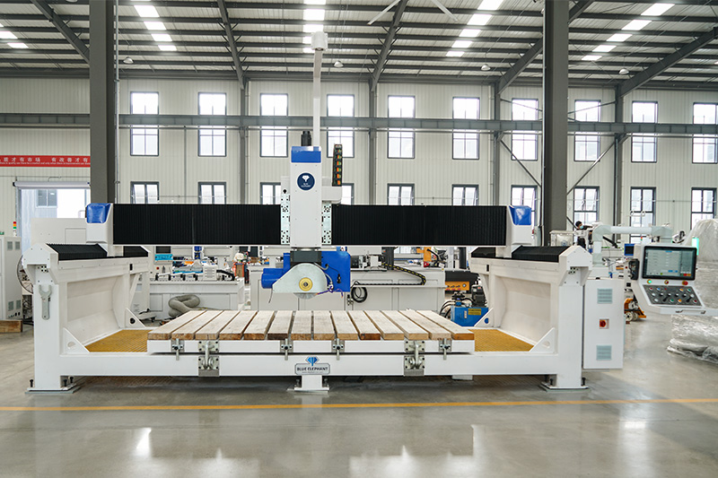 5+1數(shù)控橋切鋸可以以任何角度和形狀切割和修整花崗巖、大理石、人造石、板巖和其他石頭。完成圓形切割、方形切割、扇形切割、橢圓形切割、45°斜面切割、鉆孔、外邊緣拋光等。